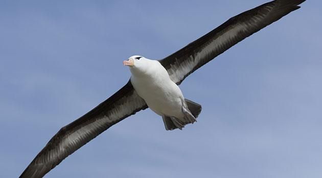 Dort wiederholt sich die Bewegung dann: aufsteigen und nach unten gleiten. Auf diese Weise gewinnen Albatrosse nach und nach an Höhe und legen gleichzeitig weite Strecken zurück – nur vom Wind angetrieben. Unterstützt werden sie dabei durch ihre großen Flügel, die bis zu dreieinhalb Meter Spannweite haben.